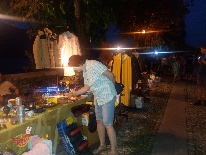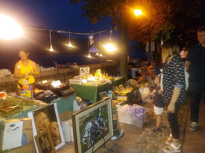 quella di sabato sul lungolago. Per tutta la giornata, da via Francesco Magistris a piazza Vittorio Emanuele III, si è tenuto lo Spazzacà, il mercatino di oggetti usati e antichi. Quest'anno l'esposizione è coincisa con la serata dello spettacolo piromusicale sul lago. Ciò ha naturalmente portato in centro moltissime persone, congestionando un po' il traffico. Turisti sia italiani che svizzeri, magari seduti in un ristorantino sorseggiando un bicchiere di vino, hanno ascoltato e ammirato lo splendido spettacolo di fuochi d'artificio. Ad incorniciare l'evento, in piazza davanti all'imbarcadero, anche la musica dal vivo della blues band Oklahoma.