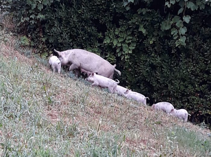 Intanto mamma scrofa e cuccioli sono diventati piccole star delle pagine social locali attirando simpatie e preoccupazioni: c'è chi si preoccupa che potrebbero essere affamati, chi teme che qualche malintenzionato possa farne salsicce, chi teme qualche reazione del grosso animale e chi infine, vorrebbe vedere risolta una volta per tutte la situazione. (Antonella Durazzo)