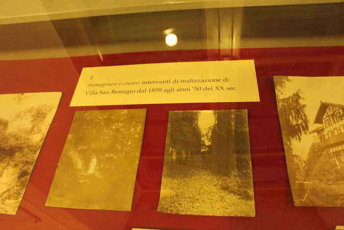 Curata dal funzionario dell'Archivio di Stato, Ignazio Galella, l'esposizione al secondo piano dell'edificio di via Cadorna porta all'evidenza una parte dell'ultima donazione all'Archivio da parte della contessa Silvia Bonacossa Sella, già proprietaria di Villa San Remigio ed erede dei fondatori. 500 fotografie e una corposa documentazione che raccontano della nascita dei giardini (nel 1896, o forse 10 anni prima), delle opere di manutenzione che si sono succedute nel tempo (fino agli anni '50), e poi degli ospiti illustri che l'hanno frequentata; amici e parenti del marchese Silvio Casanova Della Valle e della moglie-cugina Sophie Browne che quel giardino idearono sulla base del gusto del tempo. Forti di una cultura che li spinse a dare senso ad ogni terrazzo, ad ogni fontana, ad ogni statua, ad ogni piantumazione. Un giardino nato dal pensiero di Silvio e Sophie (soprattutto di lei) e dal sentimento di questi due sposi, che sin dai tempi dell'adolescenza avevano immaginato la loro opera d'arte, tanto da cominciare a realizzarla prima ancora che partissero, ai primi del '900, i lavori di costruzione della villa, come ha ricordato nel suo articolato intervento lo storico Leonardo Parachini.