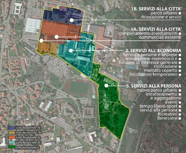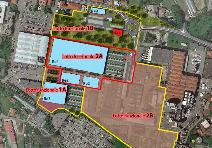 Opere che stanno nella fase due, quella dei “servizi all’economia” (e degli investimenti più massicci), che prevede un retail park (11.000 mq di negozi e 3.000 di aree coperte carico/scarico) costruito con un ampliamento di edifici pari a 3.000 mq nella fase 2/a; e 5.200 mq di spazi per start-up e innovazione tecnologica flessibili, cioè da fruire a rotazione, nella fase 2/b. A esse s’accompagnano parcheggi e spazio pedonale che costituiscono, di fatto, “una sorta di parco urbano del commercio – così viene definito nel Masterplan –, caratterizzato da negozi, mercati, ristorazioni, bar e servizi, con la presenza di negozi specializzati”. Il parco urbano del commercio sorgerebbe demolendo una grossa fetta degli stabili della produzione industriale.