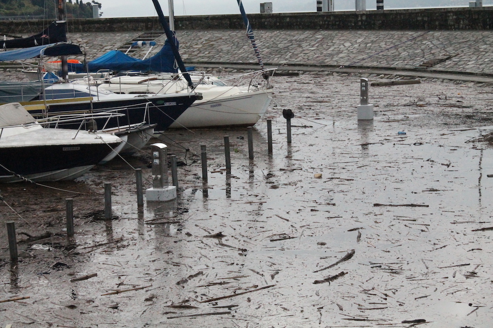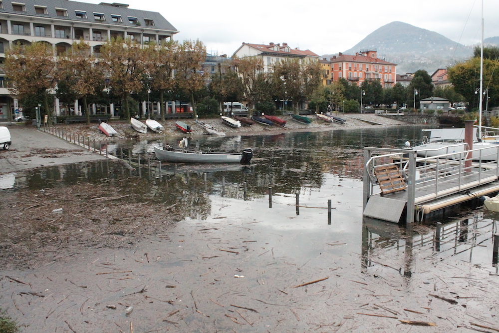il lago dovrebbe esondare sulla passeggiata di Pallanza, già inondato il porticciolo di Intra. Cresciuto di mezzo metro nelle ultime 24 ore, il Maggiore a Pallanza sfiorava alle ore 18 i 5.30 metri, il primo limite di guardia è a 5 metri, il livello di pericolo a 6. Anche a Sesto Calende, all'idrometro della Miorina, si registrano livelli decisamente da esondazione, con circa 208 centimetri sopra lo zero idrometrico (alle ore 18.30) ed un bilancio tra acqua in entrata e in uscita che parla di 2001.5 metri cubi d'acqua al secondo che entrano nel Maggiore, mentre ne escono "solo" 1044. Il quantitativo di acqua che in questi 10 giorni di maltempo s'è riversato nel lago è impressionante. Sabato 27 ottobre, a Sesto Calende c'era una situazione di secca con un livello negativo (- 23 centimetri) dallo zero idrometrico, oggi si sono superati i due metri. Con queste ondate di maltempo il Maggiore ha guadagnato due metri e mezzo, se si considera (il calcolo è del Consorzio del Ticino) che ad ogni centimetro corrispondono 2 miliardi e cento milioni di litri d'acqua, il risultato è una cifra impronunciabile.