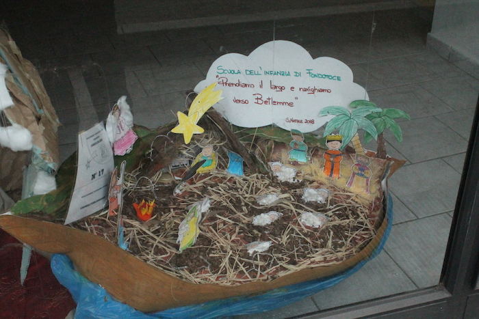 Sono presepi di privati ma partecipano anche associazioni e scuole: i bambini della associazione culturale artistica "Fare Arte" di Annalisa Tantignoni, quello ormai famoso sommerso dei Sub Verbania, quello della Fattoria del Toce, delle scuole elementari "Tozzi", della materna di Suna e della scuola dell'infanzia di Fondotoce. A fare da cornice i disegni coloratissimi dei bambini, a raccontare la Natività con sguardi incantati.