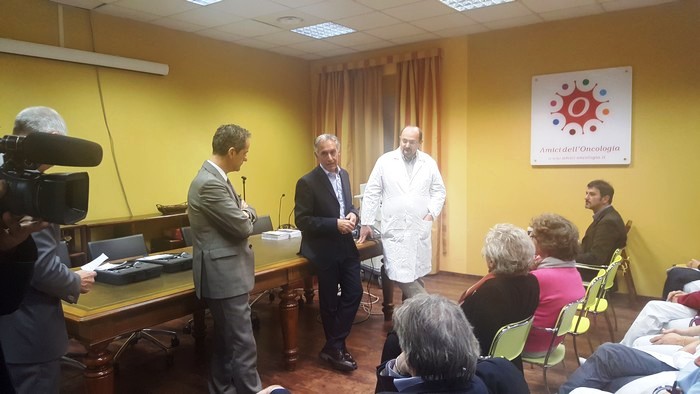 prima degli auguri. È in un clima di festa e di gratitudine che venerdì i vertici dell’Asl Vco si sono trovati all’ospedale “Castelli” per la cerimonia che ha sancito, prima del brindisi prenatalizio, il buon esito di tre progetti benefici. Il primo è il doppio regalo che l’associazione Amici dell’Oncologia ha fatto all’ospedale di Verbania consegnando due elettrobisturi “intelligenti” di ultima generazione di cui uno –entrambi saranno affidati alla struttura di Endoscopia digestiva diretta dal dottor Giuseppe Facciotto– dotato di una punta argon-plasma che brucia le lesioni.