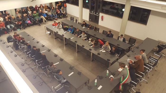 a sindaco e consiglieri “veri” e con i parenti come pubblico; la sfilata per ricevere il kit e le consegne; e l’inno di Mameli cantato all’unisono. Lunedì sera a Palazzo Flaim è iniziata la nuova legislatura del Consiglio comunale del ragazzi. Trentanove alunne e alunni di elementari e medie sono stati scelti dai loro coetanei attraverso le votazioni dei mesi scorsi che hanno concluso la prima parte del progetto di educazione civica che la città di Verbania porta avanti ormai da più di vent’anni, avendolo costituito nel lontano 1997.