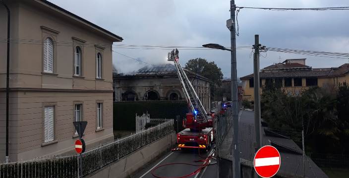 Da poco prima delle 17 di oggi i vigili del fuoco del comando provinciale di Verbania sono al lavoro per spegnere l’incendio scoppiato all’interno del compendio dell’ex fabbrica Restellini, situata tra le vie dei Ceretti, Sutermeister e Tonazzi, a poche decine di metri dalla basilica di San Vittore. Ad andare a fuoco è il tetto (guarda il video uno e due) dell’ultimo degli edifici rimasti in piedi, lo stabile che un tempo ospitava gli uffici, contiguo ad alcune abitazioni private. La zona è transennata e l’incendio non desta preoccupazioni anche se sono in corso le operazioni di spegnimento.