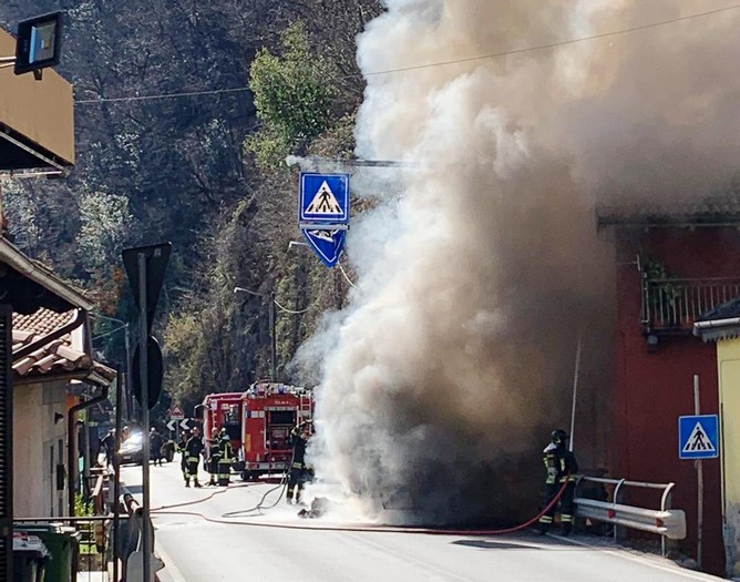 ma ingenti danni. Sono stati attimi di paura quelli vissuti stamane a Feriolo. Dal cassone di un camion di ortofrutta che viaggiava sulla statale 33 in direzione di Stresa e proveniente da Gravellona Toce, s’è levata una nuvola di fumo nero seguita da lingue di fuoco sempre più alte. Sono stati i passanti a indicarlo al conducente, un cittadino straniero, che ha immediatamente accostato ed è sceso dalla cabina, lasciando il camion lì dov’era, cioè a meno di un metro da alcune abitazioni. Le fiamme hanno divorato il veicolo e si sono propagate a due edifici adiacenti. Il primo, che un tempo ospitava un’agenzia di pratiche auto al piano terra e che oggi è vuoto, è stato gravemente danneggiato. L’altro, in cui risiedono due anziani che sono scappati fuori, ha visto intaccato tetto e sottotetto. I primi soccorsi li hanno prestati i titolari e i clienti del vicino bar. Poi sono intervenuti i vigili del fuoco, carabinieri e polizia per gestire il traffico. La statale è stata chiusa diverse ore, con pesanti ripercussioni alla viabilità e code fin all’uscita dello svincolo di Baveno dell’A26. Dopo è stata riaperta a senso unico alternato. Sono in corso le operazioni di rimozione dei detriti (anche internamente, alle spalle degli edifici) e di messa in sicurezza degli impianti elettrici e della rete elettrica da parte di Enel. Nessun ferito. Chi aveva inalato il fumo è stato portato in ospedale per accertamenti ma è stato già dimesso.
