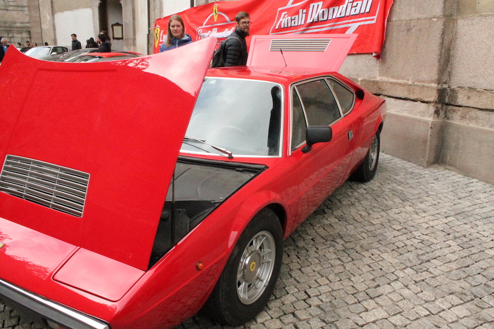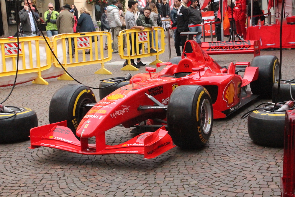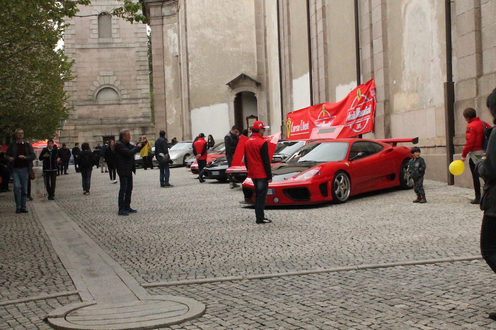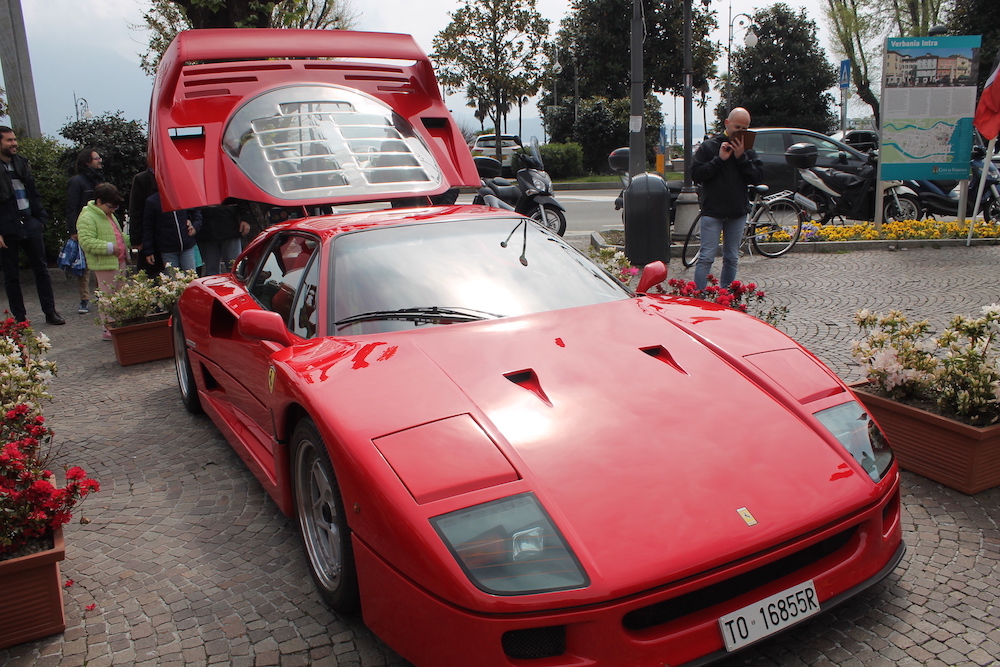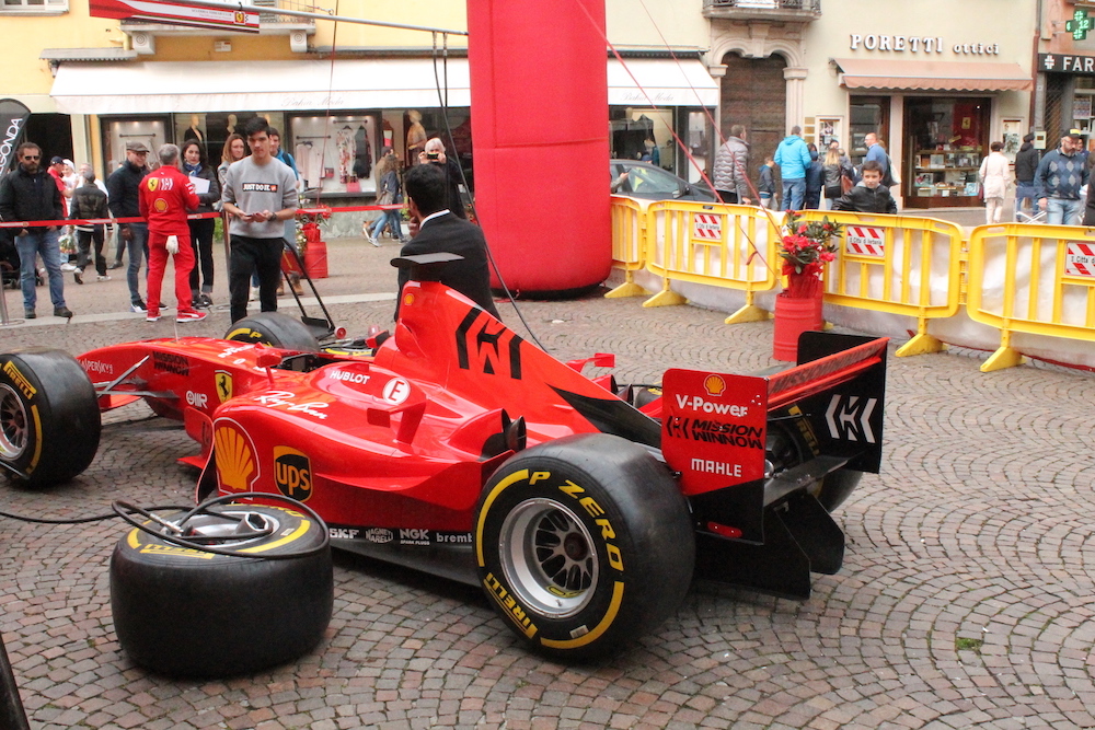VERBANIA - 13.04.2019 - La giornata uggiosa non ha virato a pioggia, e tanto è bastato che il centro di Intra si riempisse di curiosi e appassionati della "rossa" più rombante del mondo, lungo un percorso che da piazza Ranzoni a San Vittore ancora per tutto il pomeriggio offrirà alla visione le Ferrari "convocate" in città dal club verbanese e gli appuntamenti collegati all'evento (qui). Ad accogliere i visitatori in piazza Ranzoni, la F40, uno dei modelli iconici della fabbrica di Maranello, nato per celebrare i primi quarant'anni di attività sportiva della casa automobilistica. Ma poco più avanti a catturare sguardi ammirati e selfie, è la riproduzione di un vero e proprio mito, la F2002, l'auto sulla quale Michael Schumacher vise nel 2002 ben 12 gran premi, portando a casa il titolo mondiale. Poco più avanti i simulatori, gettonatissimi da giovanissimi e non, dove nel pomeriggio si svolgeranno le gare i di pittura. E poi una puntata in piazza San Vittore, dove sono in esposizione una ventina di modelli da strada, campionario di mezzo secolo di sogni in rosso.