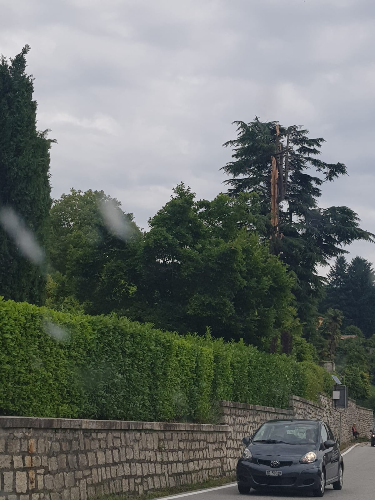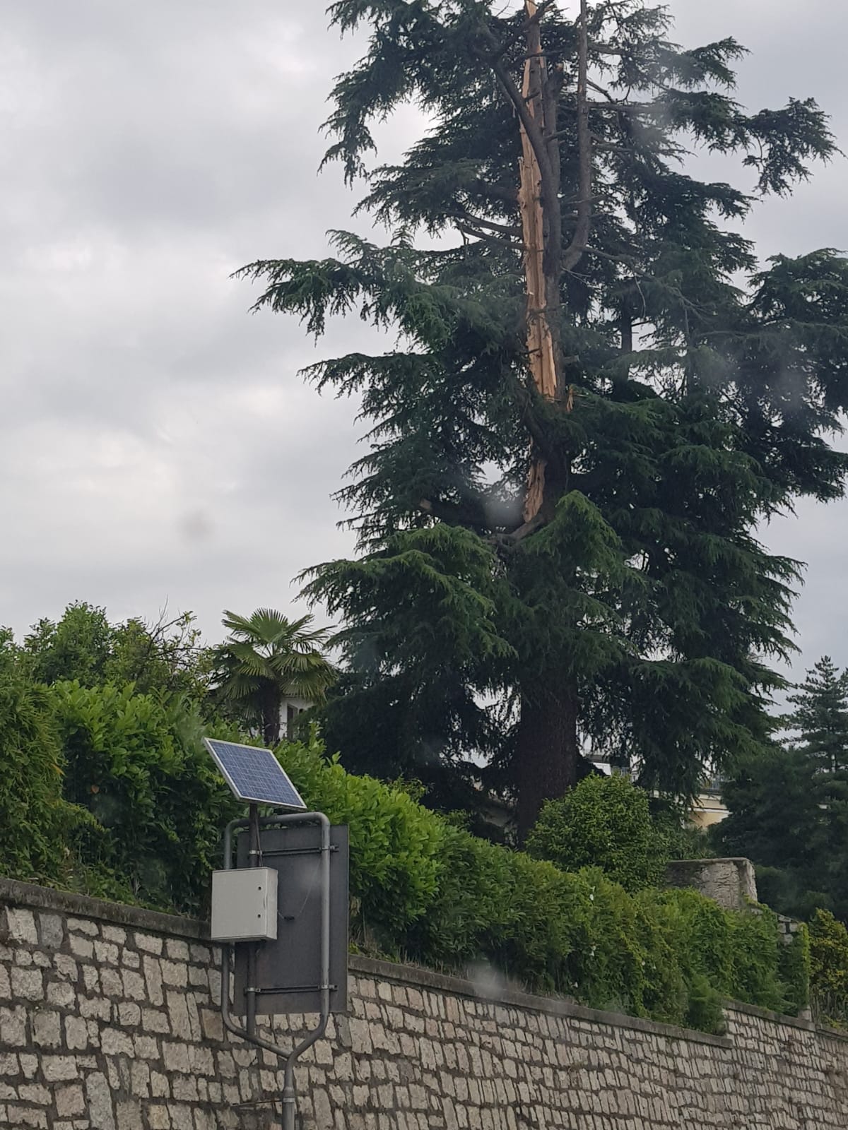 GHIFFA - 14.06.2019 - Traffico in tilt per gran parte della mattinata, da Ghiffa fino al centro di Intra. Colpa di un fulmine che nella notte ha colpito un grosso albero nel parco di Villa Bianchi, a Ghiffa, a ridosso della statale 34. Complesse e durate alcune ore le operazioni di messa in sicurezza, con il taglio dell'albero e delle piante vicine pericolanti, cosa che ha comportato l'istituzione di un senso unico alternato, e la conseguenti code che si sono spinte sino a Intra e, in direzione nord per alcuni chilometri. Problemi di viabilità lenta anche nella zona collinare, che molti hanno scelto come strada alternativa. Sul posto carabinieri, protezione civile di Ghiffa, vigili del fuoco.