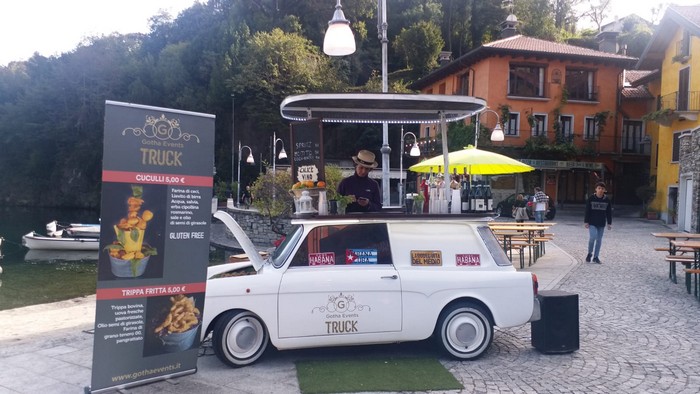 la tre-giorni del festival street food organizzato da Rolling truck street food Mergozzo con lo scopo di far conoscere il cibo di strada di qualità. In piazza Cavour, affacciati sullo specchio d'acqua del lago di Megozzo, sono stati piazzati diversi furgoncini che propongono, ciascuno, specialità regionali di tutta la Penisola. In mezzo tante panche e tavoli, oltre a quelli sul lungolago, per condividere sapori e chiacchiere.