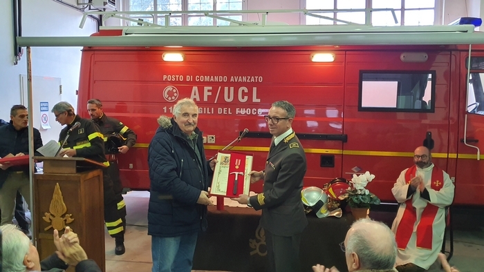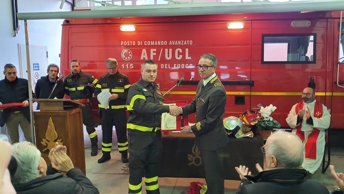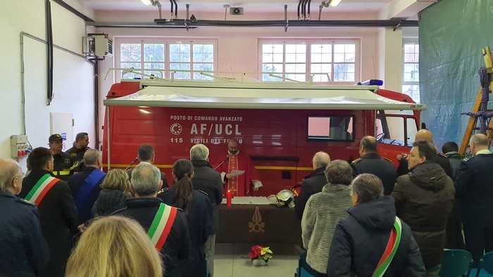 ed esibizione/esercitazione. Tra i rappresentanti delle istituzioni e tra la gente comune (era presente anche una classe della scuola materna Tozzi di Suna), stamane i vigili del fuoco del Vco hanno festeggiato la loro patrona Santa Barbara. Il comando, come accade ogni anno, ha aperto le porte alla cittadinanza -radunata per l’alzabandiera con inno di Mameli al pennone di ingresso-, mettendo in mostra i mezzi di soccorso e adibendo il deposito a chiesa. È sotto una croce fatta di corde intrecciate sorrette da una scala e davanti all’improvvisato altare della stazione mobile di comando che don Giovanni Antoniazzi, parroco di Madonna di Campagna e cappellano dei pompieri (funzione ricevuta in eredità dal suo predecessore don Egidio Borella ed esercitata per la prima volta oggi), ha celebrato la messa in onore di santa Barbara. A seguire il discorso del comandante Felice Iracà e la premiazione dei pompieri che si sono meritati nel 2019 le ricompense. I diplomi delle croci di anzianità sono state consegnate ad Adam Williams Meloni (coordinatore), Marco Candiotti, Lorenzo Giavina, Simone Crivelli, Andrea Mantoan, Marco Sacchi, Riccardo Sacchi, Gabriele Sarli e Marta Valeria Sessa (volontari). I diplomi di lodevole servizio sono andati ai caporeparto esperti Giorgio Ghidella, Eutizio Sevi, Fernando Spinozzi, Gabriele Guilizzoni; ai caposquadra volontari Giorgio Lucchini, Tullio Domenici, Valter Ottina, Giovanni Viola, Francesco Bionda e Fulvio Manoni.