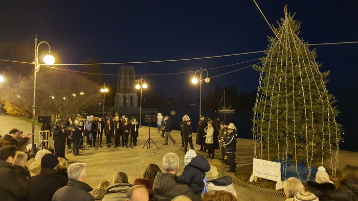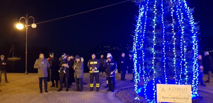 della scuola di canto “La gatta e la volpe”, il brindisi con spumante, cioccolata calda e panettone hanno riscaldato ieri la gelida serata pallanzese facendo da cornice all’accensione dell’albero di Natale di piazza Garibaldi. Un abete alto cinque metri, agghindato con palle e luci bianche e blu -i colori di Azimut, l’agenzia di consulenti finanziari che l’ha sponsorizzato- è stato collocato al centro del lungolago. L’accensione è avvenuta ieri sera alla presenza del sindaco Silvia Marchionini, del questore, dei rappresentanti di carabinieri (c’erano anche due militari in alta uniforme), vigili del fuoco e polizia locale e di circa centocinquanta persone. A fare gli onori di casa sono stati Matteo Marcovicchio, responsabile delle relazioni istituzionali Piemonte di Azimut, e il team manager dell’agenzia di Pallanza, Davide Pingitore. Marcovicchio ha evidenziato la vicinanza della società alla comunità: “abbiamo voluto regalare quest’albero e questa festa a Pallanza, a poca distanza dalla nostra sede, come primo evento di altri che ci vedranno presenti a Verbania”. Una disponibilità ben accolta dal sindaco Marchionini, che da un lato ha elogiato la disponibilità dei privati a finanziare interventi per la collettività, e dall’altro ha bonariamente promesso di bussare presto alla porta dell’agenzia per altre iniziative.