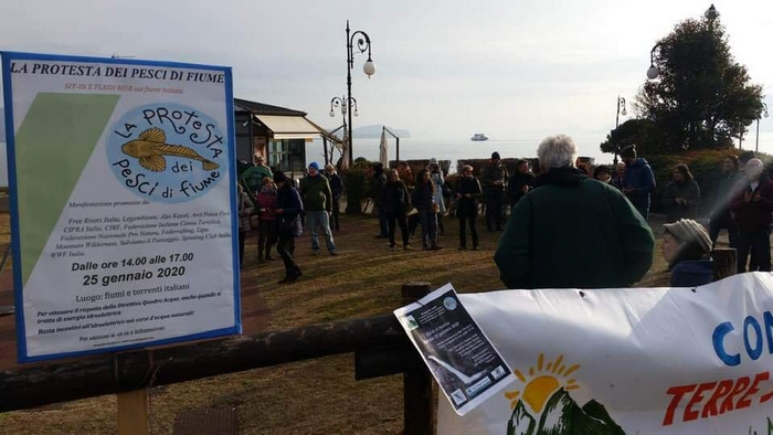 ha partecipato, ieri, al flash mob di protesta delle associazioni ambientaliste locali aderenti al movimento dei “pesci di fiume” che, in contemporanea in tutta Italia, hanno fatto sentire la loro voce contro l’eccessivo sfruttamento dei corsi d’acqua per scopi idroelettrici. A Verbania la protesta s’è concentrata al parco Cavallotti di Intra, alla foce del torrente San Giovanni. Vi hanno aderito il Comitato Terre di San Giovanni, Free Rivers Italia, Legambiente, Alpi Kayak, Arci Pesca, Cipra Italia, Cirf, Federazione Italiana Canoa Turistica, Federazione Nazionale Pro Natura, Federafting. Mountain Wilderness, Salviamo il Paesaggio, Sporting Club Italia e Wwf Italia.