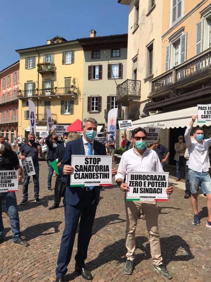 ha partecipato, questa mattina alle 11, al flash mob organizzato dalla Lega in piazza Ranzoni a Intra per protestare contro il governo Conte. C’erano i parlamentari Mirella Cristina (Forza Italia) ed Enrico Montani, c’era il capogruppo del Carroccio in Regione Alberto Preioni con il sindaco di Omegna Paolo Marchioni. Presente anche mezzo cda di Atc Piemonte Nord: il presidente Luigi Songa, coordinatore provinciale di Fratelli d’Italia (con lui il suo vice Damiano Colombo), e Marco Marchioni, consigliere nonché presidente dell’Ordine degli avvocati di Verbania. Distanziati e con le mascherine, i militanti del centrodestra hanno mostrato cartelli con slogan contro le politiche del governo, del quale auspicano le dimissioni.