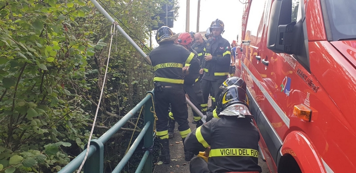 di una ventina di metri. Ha riportato ferite di media gravità, per le quali è stato trasportato dall’elicottero del 118 all’ospedale “Castelli” di Verbania, l’autista del camion che stamane, poco dopo le 8, è precipitato in un dirupo. Dipendente di una ditta che sta operando allo sgombero dei detriti della frana caduta sulla statale 34 venerdì, guidava il mezzo pesante nella stretta via per Cadessino, nell’omonima frazione che si raccorda con Rancone. Nel manovrare ha urtato con il cassone la barriera di metallo che funge da guardrail. Il camion ha sbandato ed è finito contro il parapetto, sfondandolo e precipitando sotto, in mezzo alla vegetazione. Subito sono stati chiamati i soccorsi. Vigili del fuoco, carabinieri e polizia sono accorsi insieme a personale medico. I pompieri si sono calati per imbragarlo e favorirne il prelievo con l’elicottero.