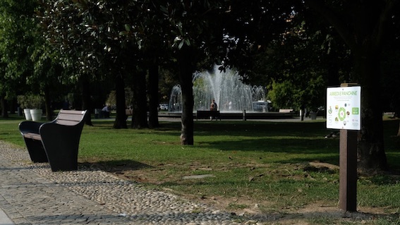 Nella realizzazione delle panchine è stata mantenuta la struttura originaria, che è stata riverniciata, mentre le vecchie stecche in legno sono state sostituite con quelle nuove in plastica riciclata proveniente dalla raccolta differenziata dei rifiuti urbani. Le stecche in plastica riciclata utilizzate per la realizzazione del ponte si caratterizzano per resistenza, durevolezza, affidabilità e sicurezza. Il quantitativo di plastica utilizzato per la realizzazione delle 40 panchine è pari a oltre 130 mila vasetti di yogurt, che diventano oltre 250 mila se aggiungiamo quello utilizzato per la realizzazione del ponte (pari a circa 120 mila vasetti). L’utilizzo di plastica riciclata ha consentito di risparmiare oltre 2 tonnellate di CO2.