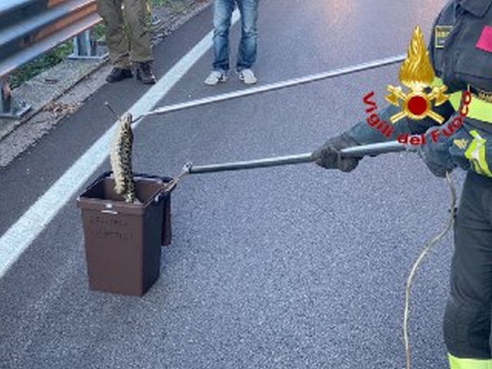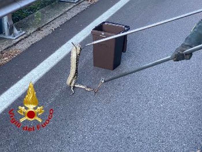 di passaggio a notarlo sul ciglio della statale 394, la litoranea che costeggia la sponda lombarda del Verbano. E hanno chiamato il numero di emergenza. Sono stati i vigili del fuoco del distaccamento di Luino, ieri sera attorno alle 18,30, a intervenire a Maccagno con Pino e Veddasca, per il recupero di un serpente. Il rettile, un pitone, a bordo carreggiata è stato prelevato e consegnato alle autorità competenti.