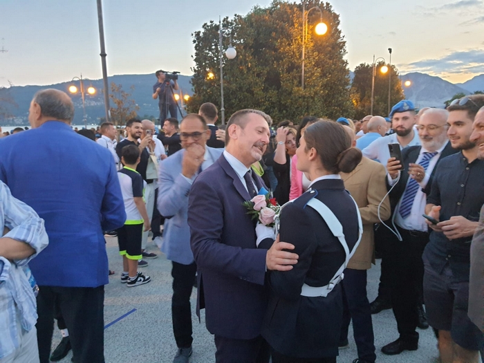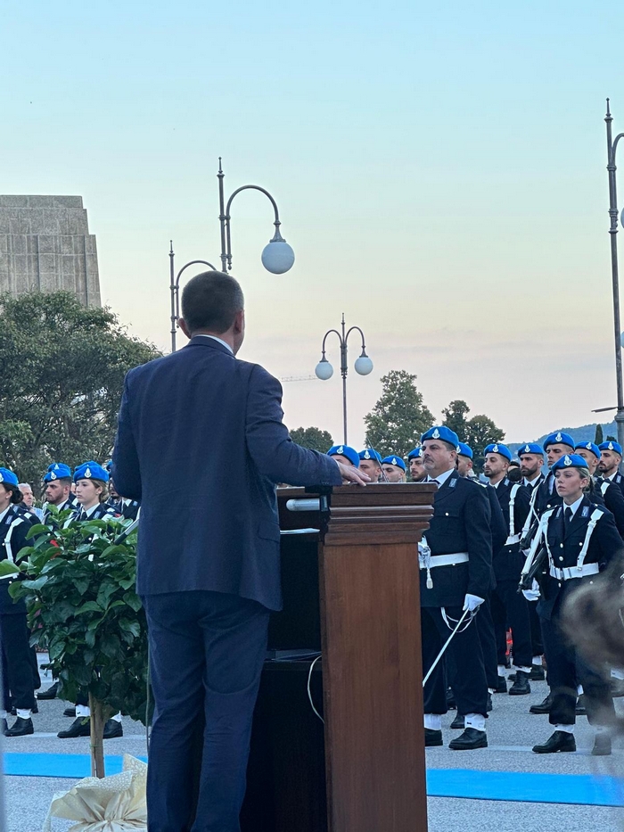 VERBANIA - 28-07-2023 -- S’è conclusa al crepuscolo, con il consueto lancio in aria dei baschi preceduto dal giuramento, la cerimonia che ha visto diplomarsi 260 nuovi agenti della polizia penitenziaria. Al termine di sei mesi di formazione svolti nella scuola “Salvatore Rap” di Verbania, gli appartenenti al 181° corso, di fronte alle autorità e ai parenti venuti da mezza Italia, sono giunti sino al lungolago marciando e, schierati in piazza Garibaldi, hanno ascoltato gli interventi della direttrice Liliana Chiarlone e del direttore generale della Formazione del ministero della Giustizia Pietro Buffa, oltre che del sottosegretario alla Giustizia Andrea Delmastro Delle Vedove, il cui volo da Roma è arrivato in ritardo, facendo slittare di tre quarti d’ora la cerimonia.