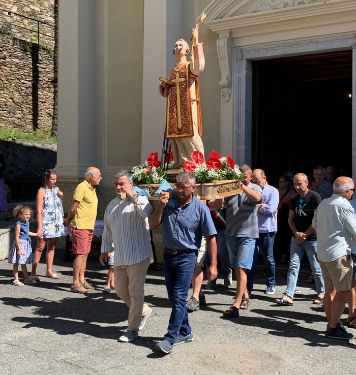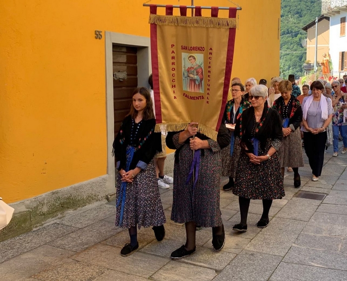 VALLE CANNOBINA - 10-08-2023 -- Con la celebrazione liturgica e la partecipata processione della statua del santo, Falmenta oggi ha festeggiato il patrono San Lorenzo. Per la piccola comunità valligiana, entrata a far parte insieme a Cavaglio-Spoccia e Cursolo-Orasso del comune di Valle Cannobina, è un appuntamento importante che rinnova le tradizioni -alla processione c’erano anche le donne con l’abito tradizionale- e le tramanda nonostante lo spopolamento colpisca i piccoli centri cannobini.