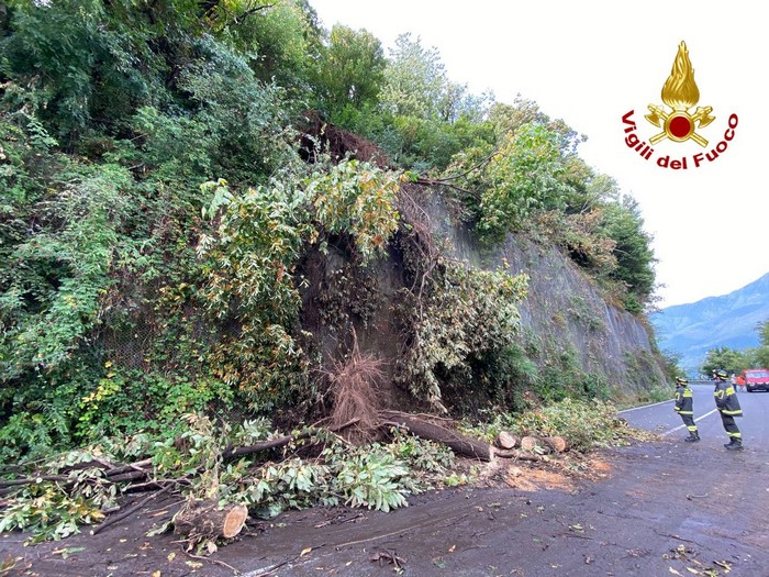 MACCAGNO CON PINO E VEDDASCA - 14-08-2023 -- Un paio di metri cubi di terra e rocce e alcune piante sono franate stamane sull’asfalto della statale 394 del Lago Maggiore orientale. Lungo la litoranea che -in sponda lombarda- porta al Canton Ticino, i vigili del fuoco sono intervenuti attorno alle 4,30. Una squadra del distaccamento di Luino ha rimosso le piante e messo in sicurezza l’area in attesa delle valutazioni di Anas e delle autorità. Al momento la strada è chiusa in entrambi i sensi di marcia e si registrano code e rallentamenti, acuiti dall’intenso traffico di Ferragosto.