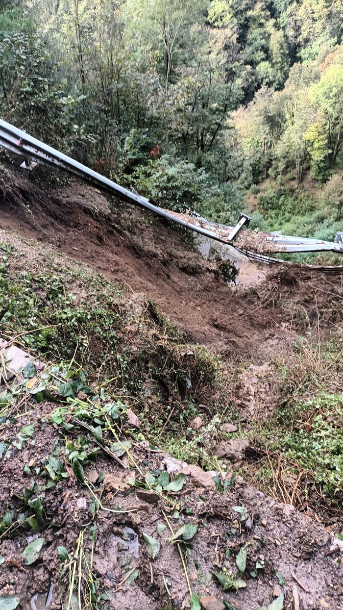 INTRAGNA - 23-09-2023 -- Sono in corso dalle prime ore di oggi le operazioni di pulizia e di ripristino della strada provinciale 59/b di Intragna, lungo la quale nella notte si sono verificati alcuni smottamenti. Tra mezzanotte e le due sulla Valle Intrasca s’è abbattuta una fortissima perturbazione e una quantità copiosa di acqua ha intriso il terreno, facendolo scivolare a valle in un tratto a cavallo tra due tornanti. I detriti si sono portati via il guardrail e hanno reso inaccessibile il passaggio.