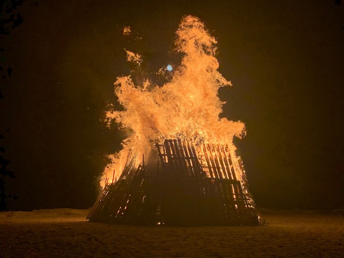 CANNOBIO - 01-10-2023 -- È stato il falò con castagnata nella spiaggia del lido di Cannobio a chiudere la festa della Madonna del Rosario, ricorrenza religiosa che cade a fine estate e che, per questo, viene considerata dalla popolazione come una sorta di festa di passaggio tra la stagione calda e l’autunno. Non a caso, nel gergo popolare, si parla di Madonna del buttun, poiché in genere a ottobre -non quest’anno, in cui il caldo la fa ancora da padrone- le temperature inducono a coprirsi indossando la giacca con i bottoni.
