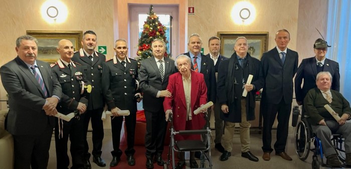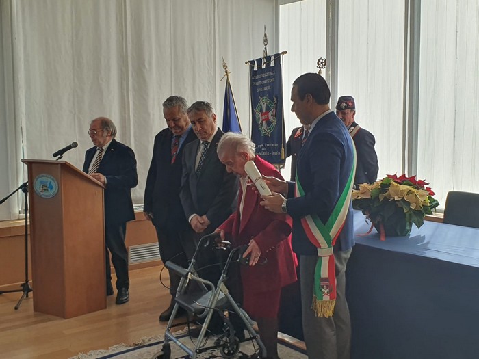 VERBANIA - 18-12-2023 -- La più applaudita è stata l’unica donna, ultracentenaria e più in gamba che mai. Il sindaco domese Lucio Pizzi ha consegnato oggi, nella cerimonia tenutasi a Villa Taranto, l’onorificenza di cavaliere al merito della Repubblica italiana a Maria Viarana. Spedizioniere doganale -prima, del suo sesso, a conseguire questa qualifica- e già domese dell’anno, ha speso molto tempo nel mondo del volontariato, al centro di ascolto della Caritas.