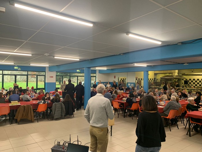 CANNOBIO - 26-12-2023 -- Per il sindaco Gianmaria Minazzi è stata una festa doppia. Il primo cittadino, da poco diventato nonno per la nascita di Marco, il primo nipote che gli ha dato la figlia Laura, ha partecipato oggi al tradizionale pranzo di Santo Stefano che l’Amministrazione comunale organizza da quasi una ventina d’anni nella sala mensa delle scuole del paese. In origine era un evento aperto alle persone in difficoltà ma, col tempo, è diventato un appuntamento per le persone anziane. Con il sindaco c’erano gli assessori Mauro Cavalli e Ludovica Merola, i consiglieri Ermanno Mazza e Giovanna Allevato, presenti insieme ai sacerdoti. Indispensabile l’apporto dei volontari, a iniziare dallo staff della cucina con Andrea Galntucci ai fornelli coadiuvato da Paola Moia e Michela Zubba.
