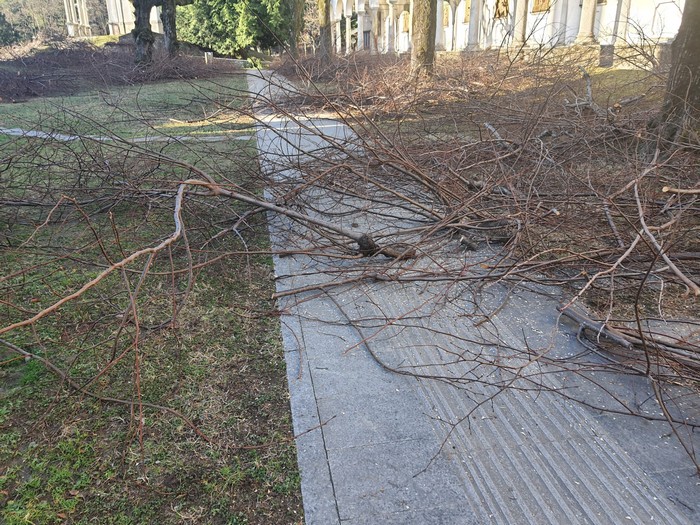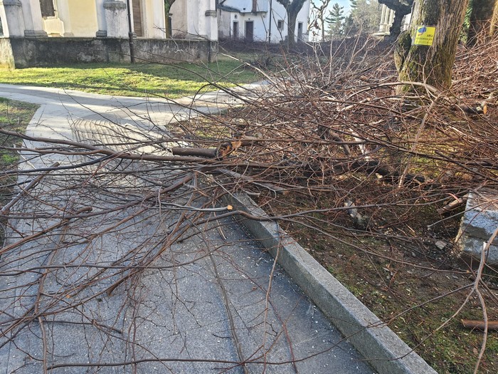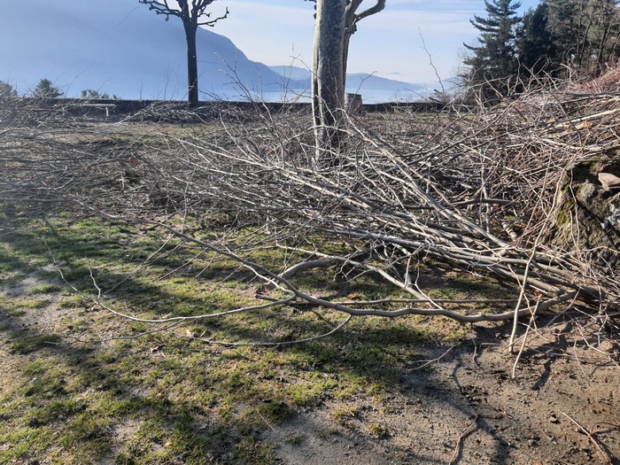 GHIFFA - 20-02-2024 -- Un brutto biglietto da visita. È questa la lamentela che l’ex consigliere comunale di Ghiffa Pierre Gelil ha rivolto, personalmente e pubblicamente via social network, alle autorità della Riserva dei sacri monti e, in particolare, a chi si occupa del parco della Santissima Trinità di Ghiffa. Sabato, in una bella giornata di sole -quasi primaverile- che ha indotto in tanti a concedersi una passeggiata sul lago, il parco del santuario, una zona panoramica assai frequentata nonché patrimonio dell'Umanità Unesco, non era pienamente accessibile. Gli operai incaricati della potatura delle piante, evidentemente senza aver concluso il lavoro effettuato nei giorni precedenti, si sono concessi lo stacco del weekend senza ricoverare i rami e gli scarti vegetali appena tagliati.