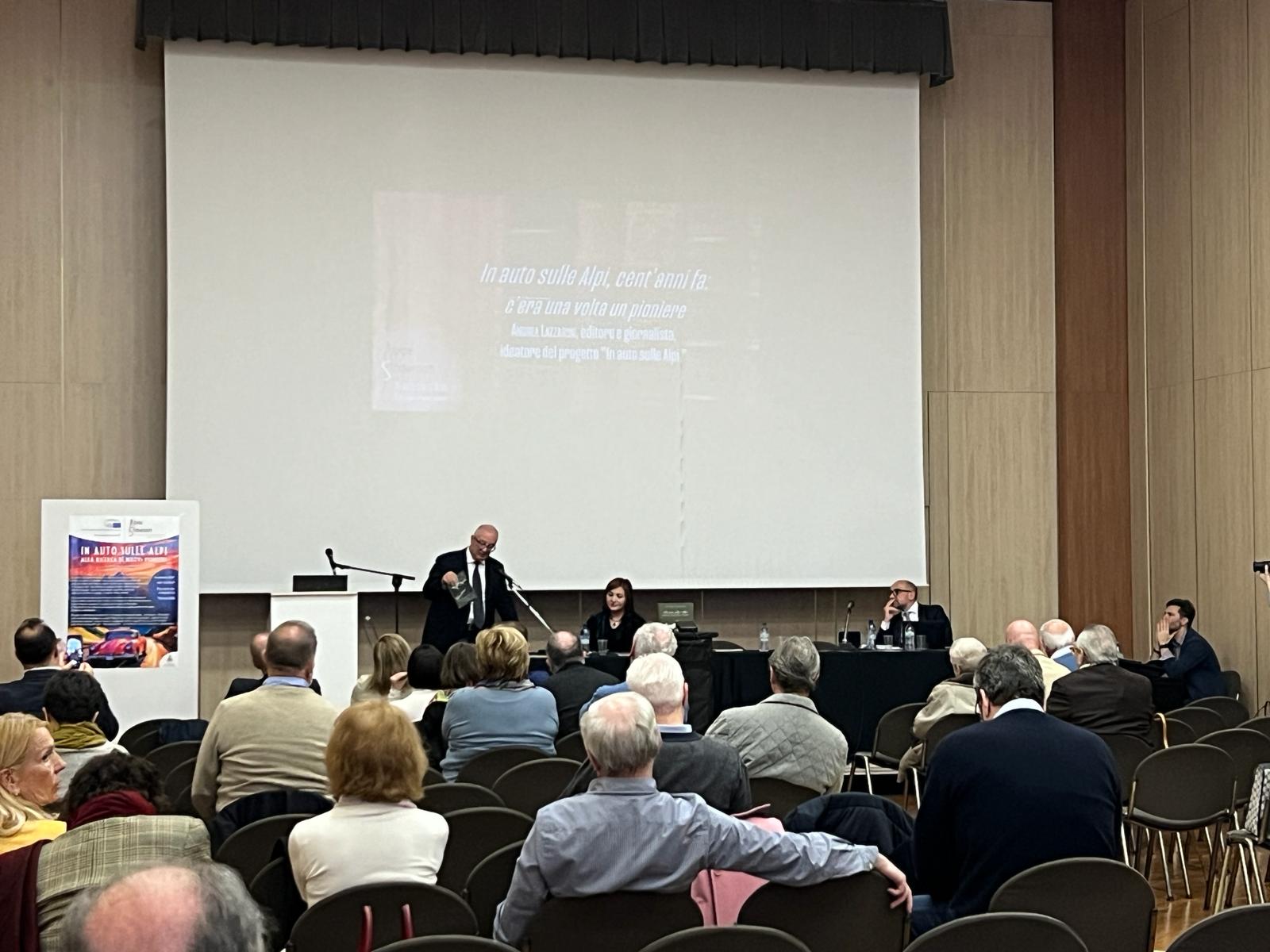 STRESA - 18-3-2024 -- Un parterre affollato ha preso parte sabato 16 marzo, al palacongressi di Stresa, al momento di confronto organizzato da AlpineShowroom su "In Auto sulle Alpi - Alla ricerca di nuovi pionieri". La presentazione dell'opera di Andrea Lazzarini e Giuliana Lonardi che racconta della nascita e del progresso della mobilità sulle Alpi in auto (qui la presentazione), è stata occasione di un convegno che ha trovato invitate personalità politiche come l'europarlamentare Alessandro Panza, il deputato Alberto Gusmeroli, il consigliere di stato ticinese Norman Gobbi, ma anche l'ex presidente della Provincia del VCO, Arturo Lincio e la sindaca di Stresa, Marcella Severino.