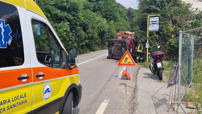 OGGEBBIO - 01-09-2024 -- La strada statale 34 del Lago Maggiore è bloccata dal primo pomeriggio di oggi a causa di un incidente stradale. All’inizio di Oggebbio una vettura di turisti svizzeri con targa di Zurigo s’è ribaltata, fermandosi a bordo carreggiata, adagiata su un fianco. Illesi i quattro occupanti. Sul posto i vigili del fuoco e il 118 oltre alle forze dell’ordine.