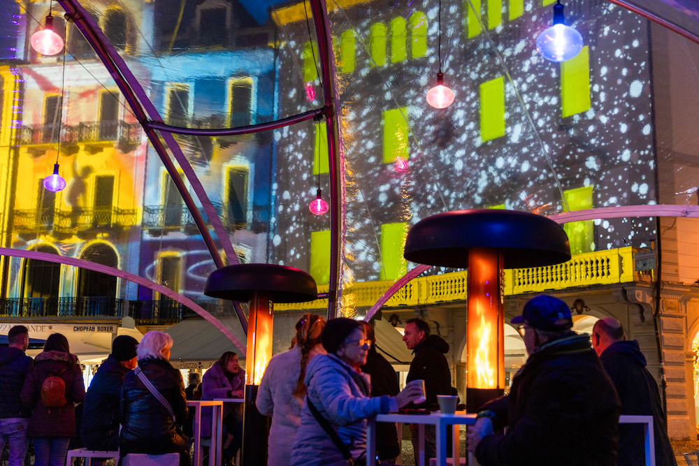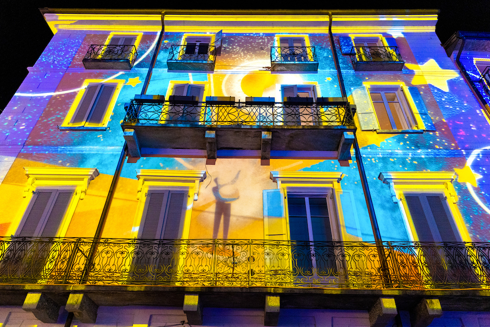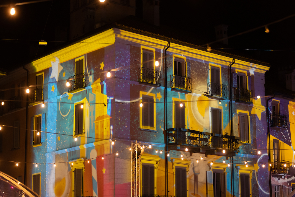 Il cuore pulsante dell'evento sono le proiezioni immersive. Il Conservatorio Internazionale di Scienze Audiovisive - CISA ha sviluppato allo scopo uno studio che ha permesso di acquisire competenze nella tecnica del video mapping, ora integrata nell’offerta formativa della scuola. Il responsabile Davide Grampa, quest’anno porterà lo spettacolo di luci anche oltre i confini di Piazza Grande, coinvolgendo il Palacinema, il Municipio, l'inizio di Largo Zorzi, il campanile e il Castello Visconteo. Una nuova fiaba dal titolo "Un abbraccio di stelle”, veicolerà un messaggio natalizio attraverso un’inedita e vivace veste grafica, con proiezioni su oltre 40 edifici.