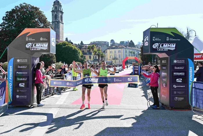 VERBANIA - 30-03-2025 -- Hanno corso insieme e insieme hanno tagliato il traguardo per primi. Solo il fotofinish e i giudici hanno assegnato a Mauro Bernardini la vittoria della diciannovesima Lago Maggiore Half marathon, che s’è corsa stamane con partenza da Stresa e arrivo a Verbania. L’antigoriano dell’Atletica Cistella ha chiuso in 1h13’32”, lo stesso crono di Ennio Frassetti della Sport project Vco. “Siamo molto soddisfatti” – commentano –. Avevamo deciso di correre insieme su questo bellissimo percorso che conosciamo molto bene. E’ stata una giornata perfetta, su un percorso sempre affascinante”. A completare il podio maschile è stato Massimiliano Bindella, attardato di 29”.