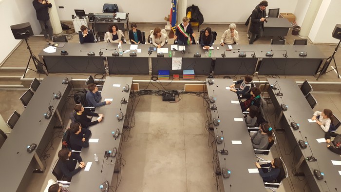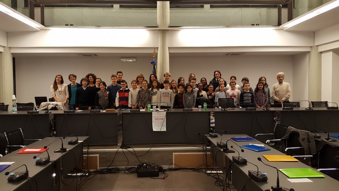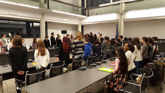 Silvia Marchionini e della delegazione dei “grandi”, l’insediamento e l’inno di Mameli. Per i 32 (oggi presenti solo 27) neo-eletti del Consiglio comunale dei ragazzi di Verbania quella di oggi è stata la giornata del loro debutto a Palazzo Flaim. Alle 17,45 nella sala consiliare gli animatori della cooperativa Azimut, che cura il progetto Ccr per conto del Comune, hanno presentato le novità del biennio che sta per partire e che ha avuto come prologo le elezioni dei mesi scorsi. Tra i 12 progetti candidati, abbinati alle candidature degli studenti delle quinte elementari e delle medie, i “colleghi” alunni della città hanno votato i migliori, che saranno realizzato nel corso del biennio. La cerimonia s’è aperta con l’appello, poi il primo cittadino ha portato i suoi saluti, lodando l’impegno “in un periodo in cui essere amministratori è mal visto dalle persone”. Poi, insieme agli assessori Monica Abbiati, Cinzia Vallone, e ai consiglieri “adulti” Alberto Catena Cardillo, Marinella Ferraris e Patrich Rabaini, ha consegnato ai neoeletti una cartelletta lasciata in eredità – una sorta di diario – da chi li ha preceduti.