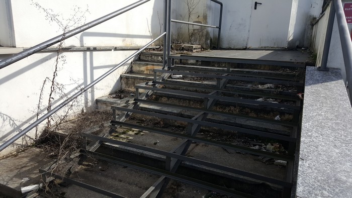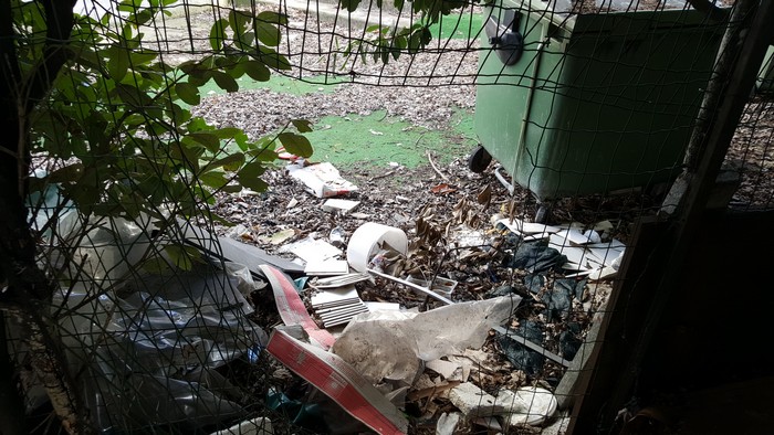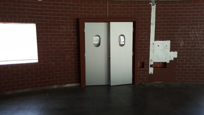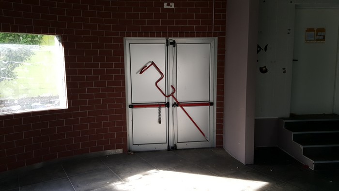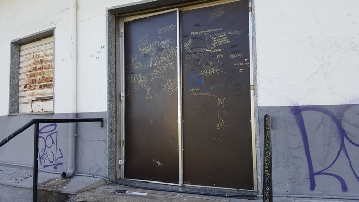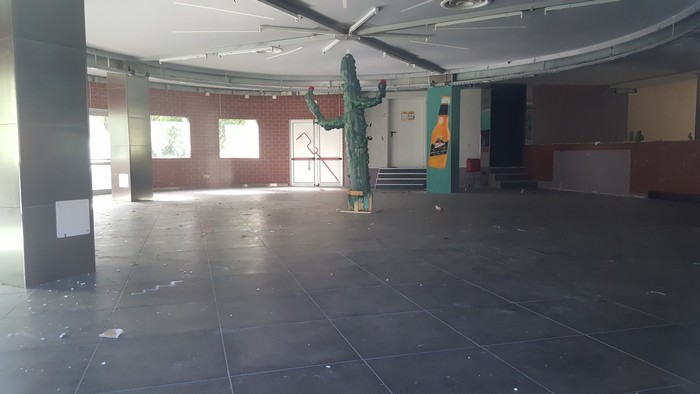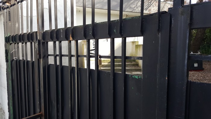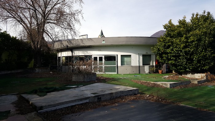 Oggi pomeriggio abbiamo provato a effettuare un sopralluogo alla struttura, sia dal lato della strada – aperta tutto il giorno – sia dal vicino parco giochi dell’ex minigolf. Su quest’ultimo si affaccia una delle uscite di emergenza del locale un tempo sala da ballo. La porta è aperta e basta allungare una mano per vedersi schiudere l’interno del salone principale. Un paio di metri più a lato è aperto anche un pertugio nella ramina. Da lì si può entrare, anche se con difficoltà, nello spazio un tempo utilizzato come cortile esterno del locale. Non si può invece accedere al cortile da altre parti del parco giochi perché la recinzione è stata rattoppata con pannelli in legno. Se invece si prova a cercare una via d’ingresso da via Sironi, ci si accorge che tutte le porte sono chiuse a chiave. Lo è anche il cancello collocato tra il locale e la stazione di pompaggio della fognatura. Ma lì accanto, alla base del pilone di cemento del sovrastante svincolo stradale che dal ponte conduce all’imbarcadero, la siepe è mancante e la ramina rotta al punto che si entra senza difficoltà piegandosi. A quel punto, una volta nel cortile, si può aprire il cancello grande (la serratura è antipanico), ma anche arrivare a un’altra porta d’accesso al cortile, che è sfondata e dal cui buco si mette piede nella sala da ballo. Per terra ci sono suppellettili vecchie ma non sporcizia e degrado. Il piano terra è abbandonato, qualche vetro è rotto, mancano alcune assi del parquet, tutti i sanitari dai bagni. È invece impossibile salire al piano di sopra, il vecchio alloggio dei proprietari, perché la porta tagliafuoco che si schiude sulle scale è chiusa a chiave.