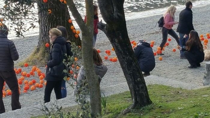 Fulcro della festa è stata la sala Pietro Carmine che ha ospitato una mostra costruita attorno a una tavola imbandita in stile Belle Epoque e che ha esposto le diverse varietà di agrumi. Tutto intorno i mercatini a tema, creati per disegnare un percorso sino al lungolago, dove spicca l’installazione artistica “Orangearancio”: finte arance pendono dagli alberi, costellano l’arenile e si spingono nelle acque gelide del Verbano. La festa ha visto anche le visite guidate ai giardini privati, le gite sul catamarano a energia solare, l’escursione a piedi alla frazione Cassino, la degustazione del Bercencione – un tè agli agrumi locali – e più momenti di musica e canzoni.