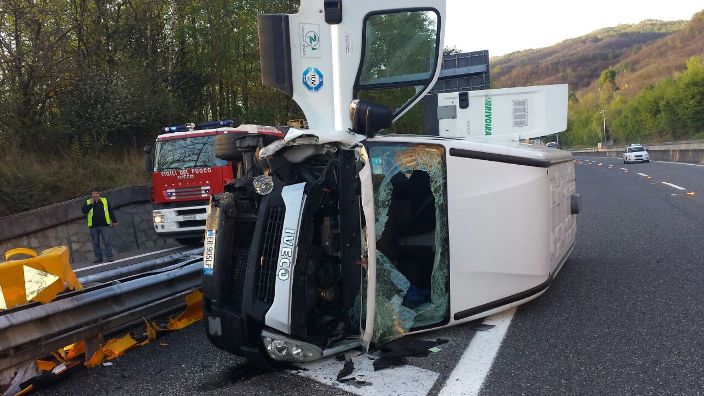 dell’A26 e nel fare manovra è finito a sbattere contro la cuspide di plastica dello svincolo, ribaltandosi. È accaduto stamane a R.M., 2enne di Novara, conducente di un furgone Fiat Iveco Daily che viaggiava in direzione nord e che avrebbe dovuto imboccare l’uscita di Baveno. Nel fare manovra, però, probabilmente s’è attardato e quando ha sterzato non è riuscito a controllare il veicolo, che ha urtato le barriere protettive e, ribaltandosi, s’è adagiato sul fianco destro. il camionista ha riportato lesioni leggere, fratturandosi alcune costole (probabilmente non indossava le cinture di sicurezza). Soccorso dal 118 è stato portato al Dea dell’ospedale “Castelli”. Sul posto anche i vigili del fuoco per la rimozione del mezzo e la pulizia della strada e una pattuglia della Polstrada di Romagnano Sesia per rilevare il sinistro.