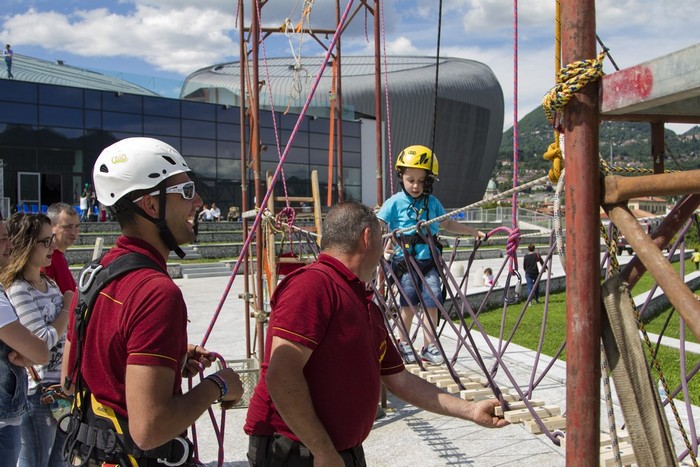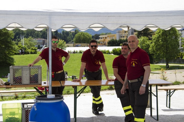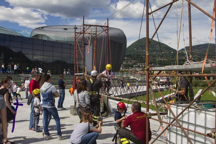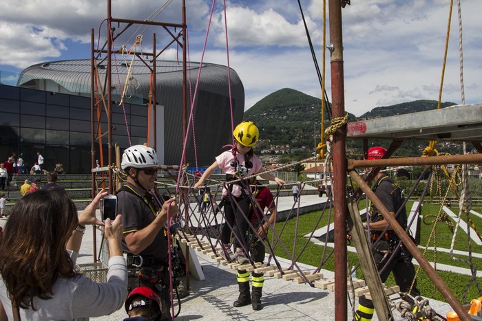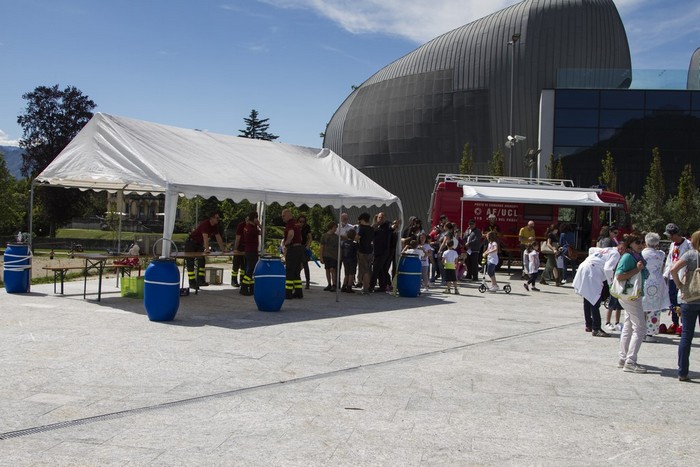 la carrucola, il capanno invaso dal fumo… Giovani vigili del fuoco crescono con “pompieropoli”, la manifestazione organizzata dal comando provinciale dei vigili del fuoco e proposta ieri pomeriggio nello spazio esterno al teatro Maggiore. L’arena s’è trasformata per un giorno in una piccola caserma per apprendisti vigili del fuoco, che sono stati aiutati in esercizi e simulazioni e che hanno potuto guardare da vicino – anche provandoli – mezzi e attrezzature.