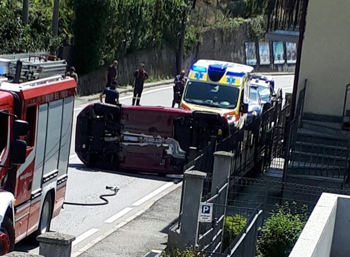 che la Fiat Panda della postina, davanti a lei, rallentava per accostare a bordo strada e, così, l’ha tamponata, “decollando” e cappottandosi su una fiancata di traverso alla carreggiata. È accaduto attorno alle 12,30 di oggi a Verbania, in via Battaglione Intra. incolonnate viaggiavano sul rettilineo che dal ponte del Plusc conduce a Renco la Panda di Poste Italiane guidata da un’operatrice di 60 anni e la Peugeot 206 al volante della quale c’era una 45enne verbanese con a fianco la figlia di 17 anni. La donna, che pare viaggiasse a velocità sostenuta – la dinamica del sinistro è al vaglio dei carabinieri – s’è accorta solo in ultimo del rallentamento del veicolo che la precedeva e non è riuscita a evitarlo. Nella collisione la Peugeot s’è in traversata, ribaltandosi. Sul posto, oltre i carabinieri, sono intervenuti i vigili del fuoco e il 118. Nessuna delle tre persone coinvolte ha subito lesioni serie.