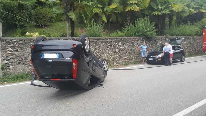 portato al Dea ma sta bene l’automobilista che questa mattina attorno alle 8,20 è stato protagonista di un incidente stradale sulla statale 34, sulla cui carreggiata s’è ribaltato con la propria vettura. Residente a Ghiffa, sulla settantina, viaggiava da Verbania verso nord quando, all’altezza del Circolo velico Canottieri Intra, poco prima dello Zust ha urtato un muretto con la ruota destra finendo col cappottare la sua Ford Fiesta. Il veicolo, che ha visto scoppiare gli airbag e andare in frantumi i vetri, è atterrato sul cofano, restando con le quattro ruote all’aria. Nessun altro mezzo è stato coinvolto. Sul posto sono intervenuti l’ambulanza, i vigili del fuoco per ripulire la strada, la polizia municipale di Verbania e anche la polizia (guarda il video dell’arrivo). La Croce Rossa l’ha poi accompagnato al Dea del “Castelli” (guarda il video).