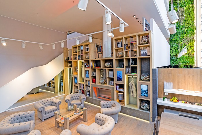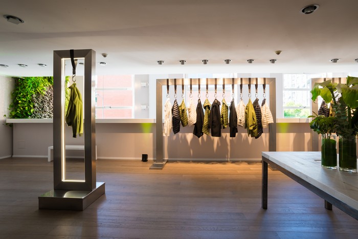 L’evento s’è tenuto nel nuovo spazio milanese di Herno, uno showroom dislocato su cinque piani e 1.600 metri quadrati caratterizzato dall’arredamento di stile e dal classico gancio in acciaio che regge i capi e che è ormai il brand dell’azienda. I capi presentati sono stati abbinati, nei colori e nelle sensazioni, ai piatti di DiVittorio, ristorante premiato con le tre stelle Michelin, eccellenza italiana di un settore – la cucina – che è (come la moda) eccellenza nel mondo.