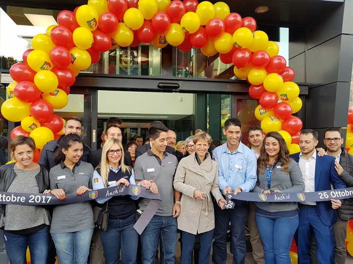selfie, il traffico intasato con i vigili a gestirlo… L’inaugurazione della nuova Lidl, stamane alle 9 a Pallanza, è stato quasi un evento mondano, sicuramente un bagno di folla. Al taglio del nastro, che ha visto accanto al direttore regionale Lidl Luca Ros il sindaco di Verbania Silvia Marchionini, erano centinaia le persone intervenute, tra semplici curiosi e chi era interessato alle offerte lancio. E anche dopo l’apertura per tutta la mattinata e parte del pomeriggio è stato un viavai tra l’interno del supermercato e l’area verde realizzata all’esterno.