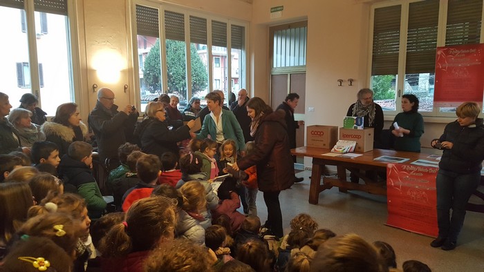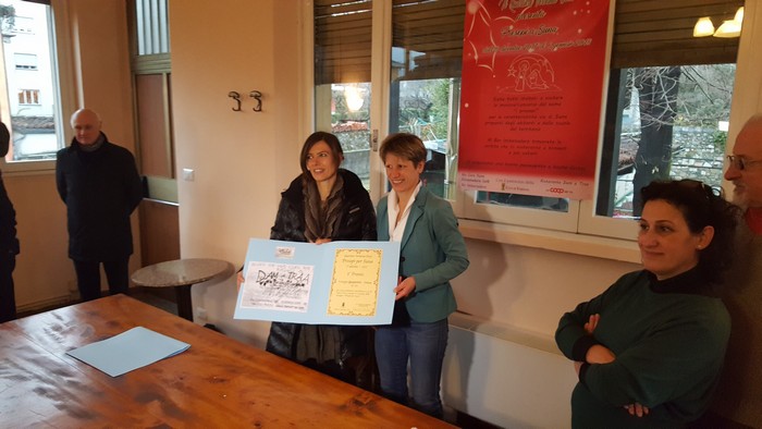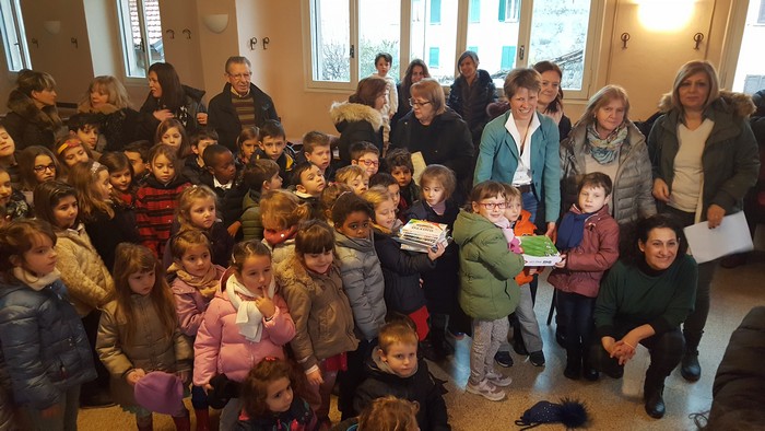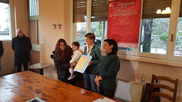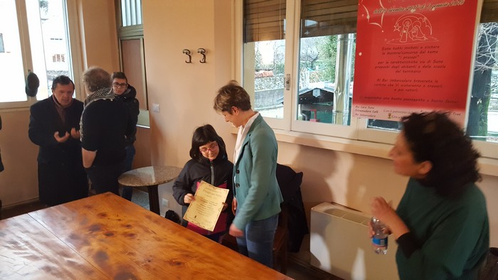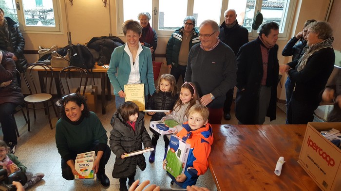 Nel salone al primo piano sono stati consegnati anche i riconoscimenti alle scuole: a quella d’infanzia Antonio Rossi di Suna, alla materna Santo Bambino di Fondotoce, alle classi seconde delle elementari Tozzi di Suna. Gli alunni, accompagnati dalle maestre, hanno ricevuto in premio materiale didattico offerto da Coop, partner dell’iniziativa insieme ad altre attività sunesi. Una menzione particolare è andata ad Annalisa Tantignoni dell’associazione “Fare Arte” e a Beatrice Ronchi, alunna delle elementari il cui disegno, molto apprezzato dal pubblico, è stato scelto per colmare il vuoto di un presepe venuto a mancare alla vigilia della mostra.