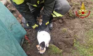 Gattina di tre anni intrappolata in un tubo e salvata dai vigili del fuoco